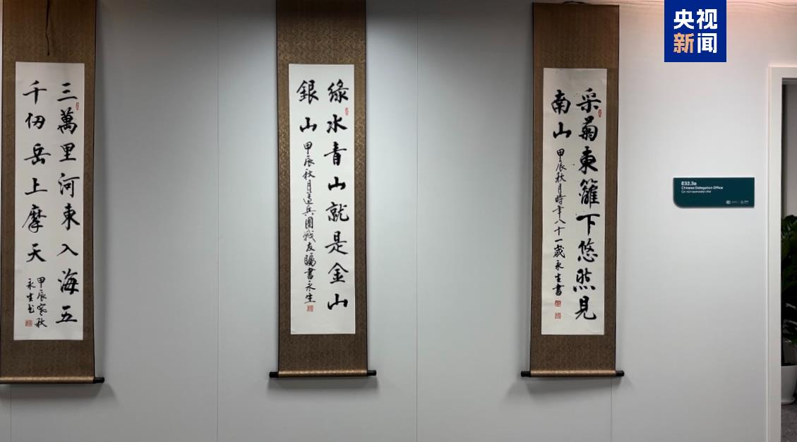 △ 第29届和解国欢畅变化大会中国代表团办公室里挂的三幅字