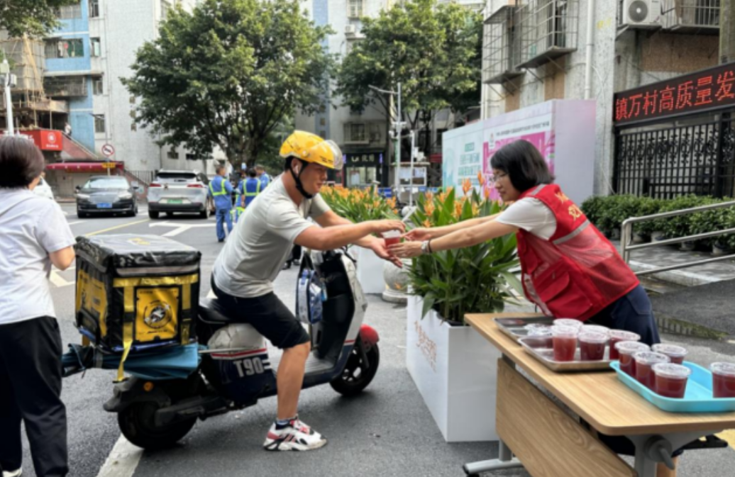 在“药食同园”生态角,老党员们把艾草碾碎制成驱蚊香囊;在燕邻家助餐配餐室,老党员们熬制好防暑降温的凉茶,分发给干预防疫的党员志愿者。